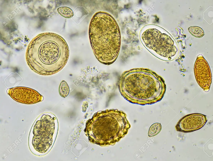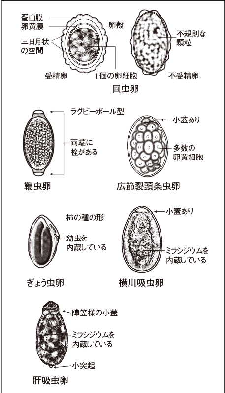 回虫、蟯虫、条虫などは便をよくかき混ぜて検出する。